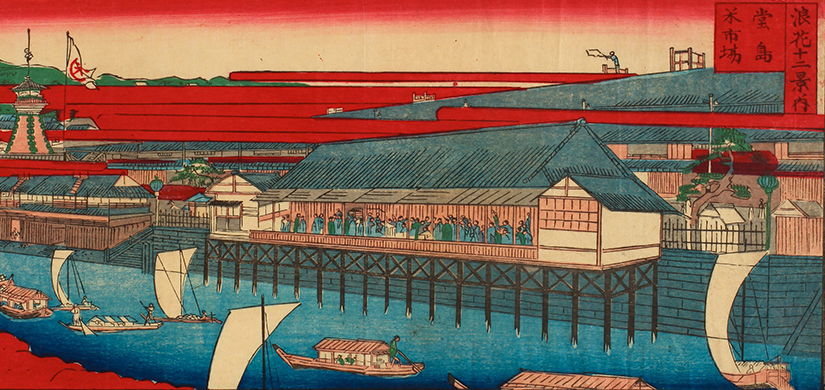 Dojima Rice Market: Every year, rice harvested from all over Japan was transported by land and sea to Dojima in Osaka. The market was also the site of the world’s first futures trading. Many feudal lords across the country actively participated in this trade in an attempt to stabilize their finances.